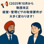 - 経営・管理ビザの制度改正について(2025年10月施行予定)2025年10月中旬より、経営・管理ビザの取得要件が大幅に改正される予定です。今回の改正は、制度の趣旨に沿った… 続きを読む: 経営・管理ビザの制度改正について(2025年10月施行予定)